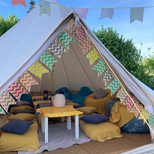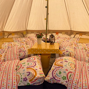 We can supply you with a spacious Bell Tent furnished with tables and chairs for that party meal, for up to 10 guests or create more of a play tent area with various soft play, games and dressing up items if you would prefer.